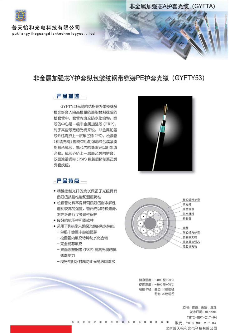 >> 標(biāo)準(zhǔn)非金屬加強(qiáng)芯Y護(hù)套鋼帶鎧裝光纜(GYFTY53)
