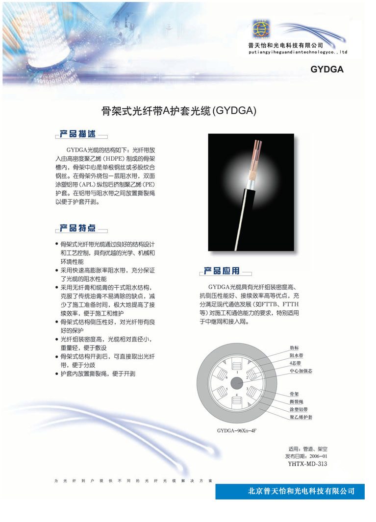 >> 骨架式光纖帶A護套光纜(GYDGA)